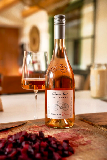 Vibrante y frutal, Bicicleta Rosé es una interpretación fresca y ligera del Pinot Noir. Sus notas de frutillas y cerezas se combinan con una acidez refrescante que lo hace ideal para momentos descontracturados. Perfecto para acompañar ensaladas tibias con queso de cabra, quiches, sopas de tomate o incluso una tarta de frutos rojos. Un rosé que demuestra que el invierno también puede tener un lado liviano y lleno de color.