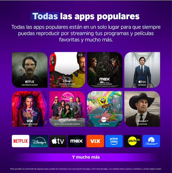 Para más información sobre los diferentes canales disponibles en la plataforma Roku, The Roku Channel, dispositivos Roku, modelos de Roku TV y más, visita www.roku.com