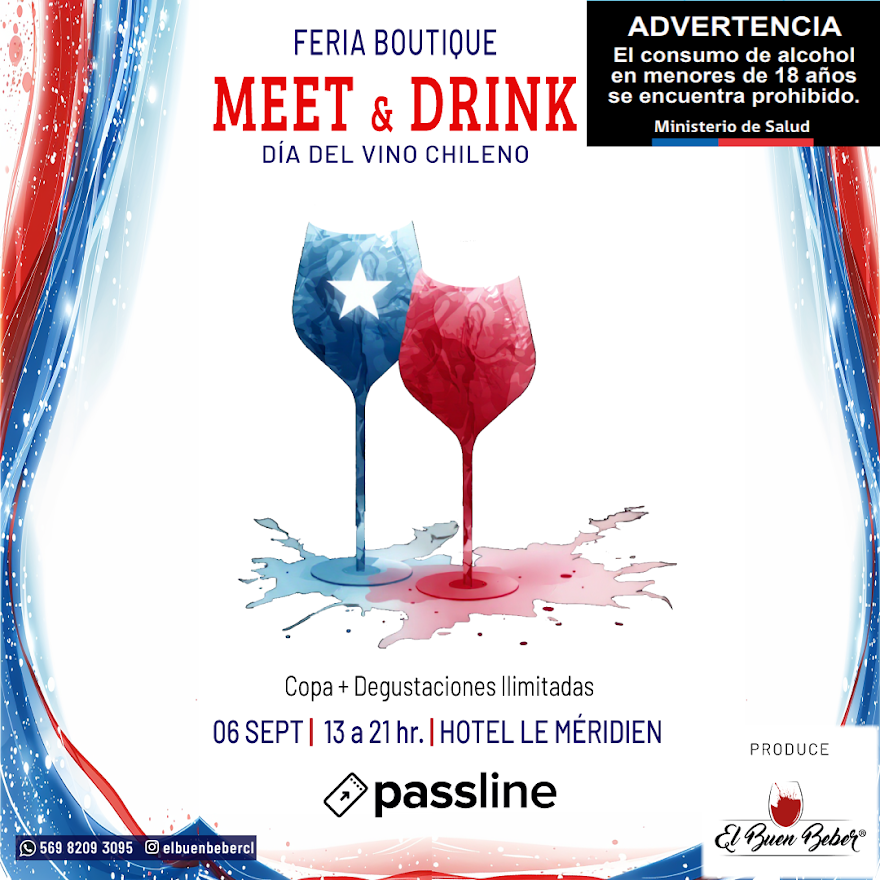 “Los asistentes a esta actividad podrán degustar, compartir y celebrar la magia del vino chileno en un ambiente relajado y exclusivo para adultos. Sin preocuparse de lo variante del clima de septiembre porque estamos en un salón de un hotel precioso, cómodo, con estacionamientos y un restaurante al que también los asistentes pueden asistir”, indica Lucia Aguayo, fundadora de El Buen Beber y productora general de Meet and Drink.