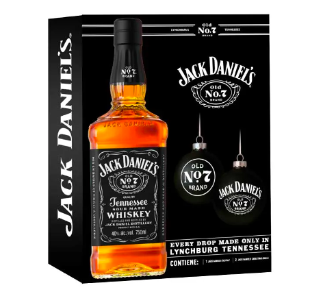 Y el whiskey más icónico de Tennessee, Old N.7 con su suavidad única, gracias al proceso de filtrado gota a gota a través de carbón de arce, y su sabor inconfundible con notas de caramelo, vainilla y roble tostado, de 750cc + dos esferas navideñas en su versión Old N.7.