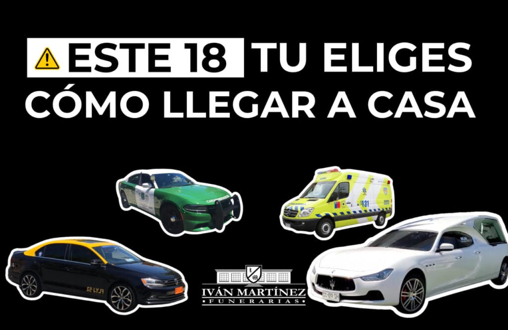 La funeraria Iván Martínez sorprende una vez más durante estas Fiestas Patrias. “Si bebes no conduzcas» es el título de su icónica campaña en el marco de la celebración del nuevo aniversario patrio. En esta ocasión, la «Casa Funeraria de Chile», lleva recorriendo varios días las calles de Santiago con caravanas de carrozas, incluidas las Maserati y Camaro, cubriendo circuitos gastronómicos, donde promotores de conciencia entregan el mensaje acompañado de botellas de agua con el propósito de persuadir a las personas acerca de la importancia de cero alcohol en estas celebraciones.